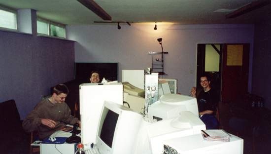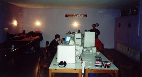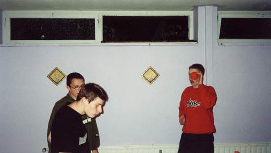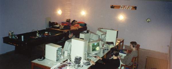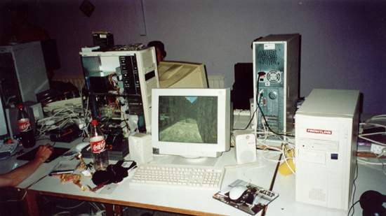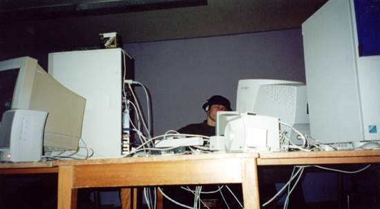 Dash wie er seinen PC aufbaut, Ace wie er in einer total bescheuerten Bewegung ist und unten rechts im Bild der Ellebogen von GnoM :)
