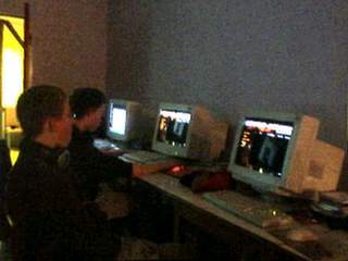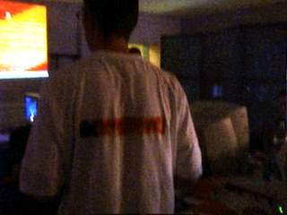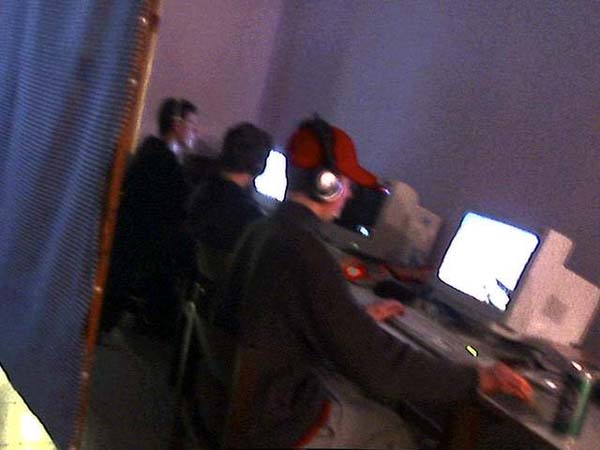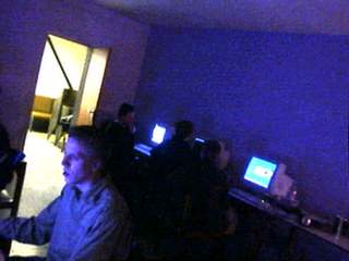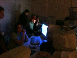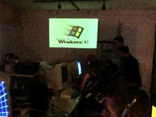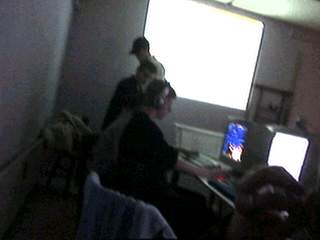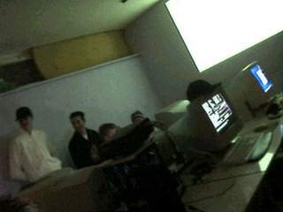 Im Vordergrund der schwarze Kasten ist unser Beamer. Die Kerls dahinter die foler: turtle, lil'don, potenzgott und razor.